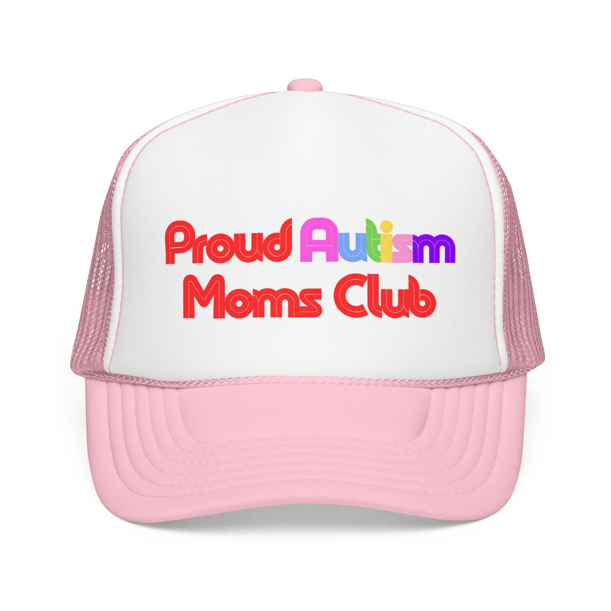 This structured foam trucker hat carries a warm, supportive message: colorful, rounded lettering reading “Proud Autism Moms Club” across a clean white front panel. Lightweight mesh at the back keeps air flowing during busy days while the thicker laminated foam front holds the design crisp and visible. The adjustable snap lets you pop it on for school drop-offs, therapy appointments, park outings, or community events — a quiet badge of solidarity that feels both casual and intentional. It sits high-profile and structured for a bold silhouette, and the matching undervisor and braided trim give it a finished, thoughtful look. Wear it while cheering from the sidelines, walking neighborhood routes, or meeting up with other parents — it’s made to be seen and to start gentle conversations.
