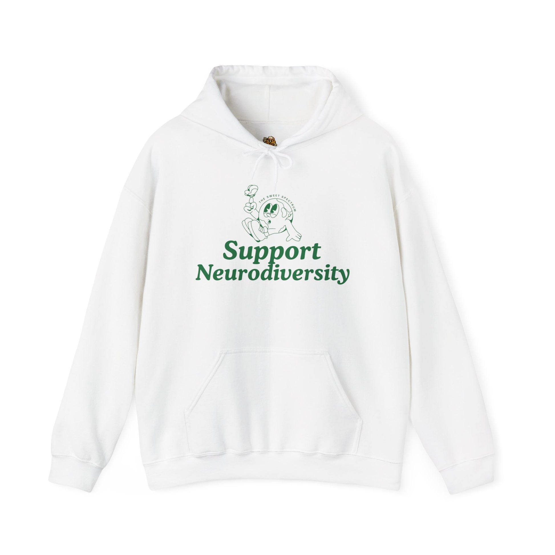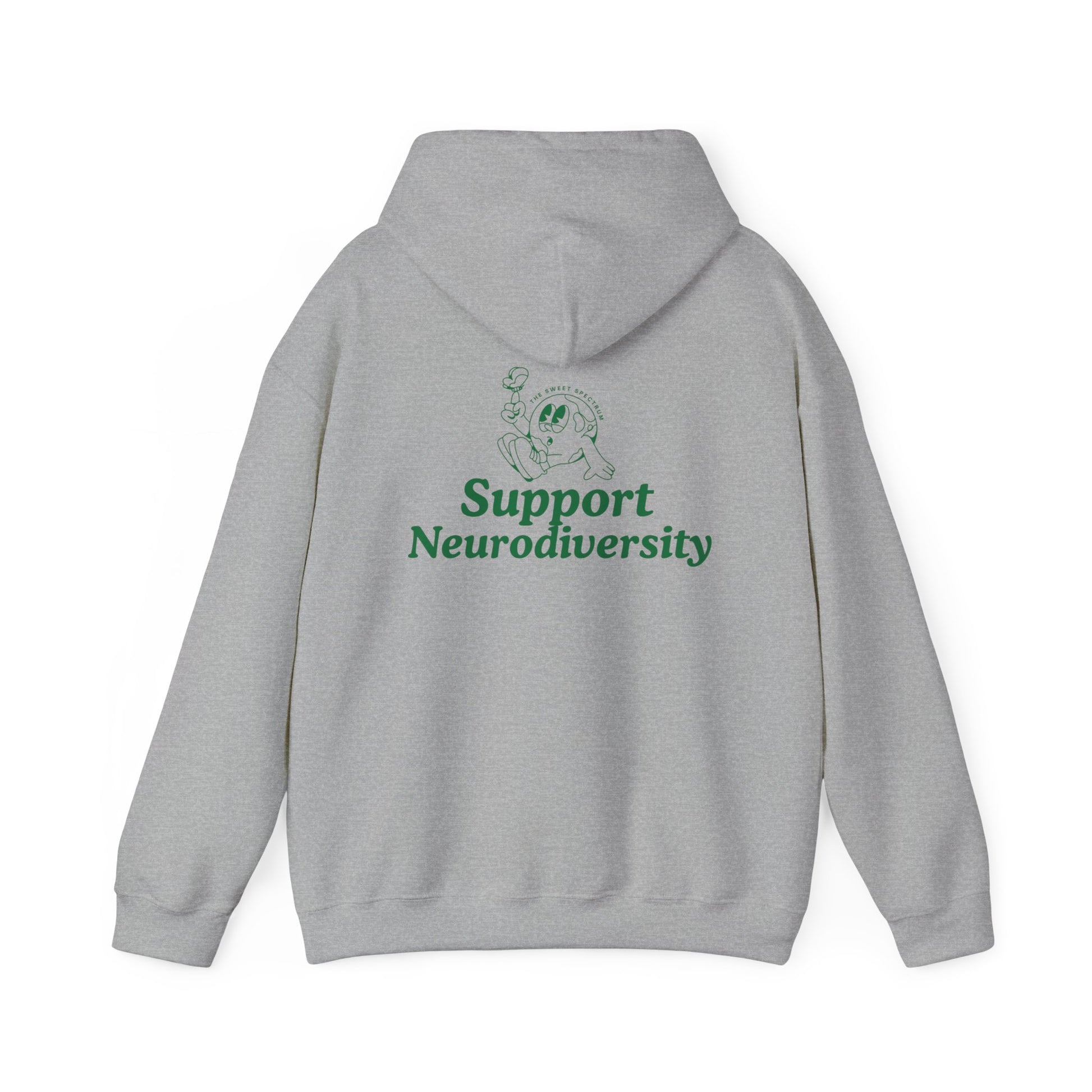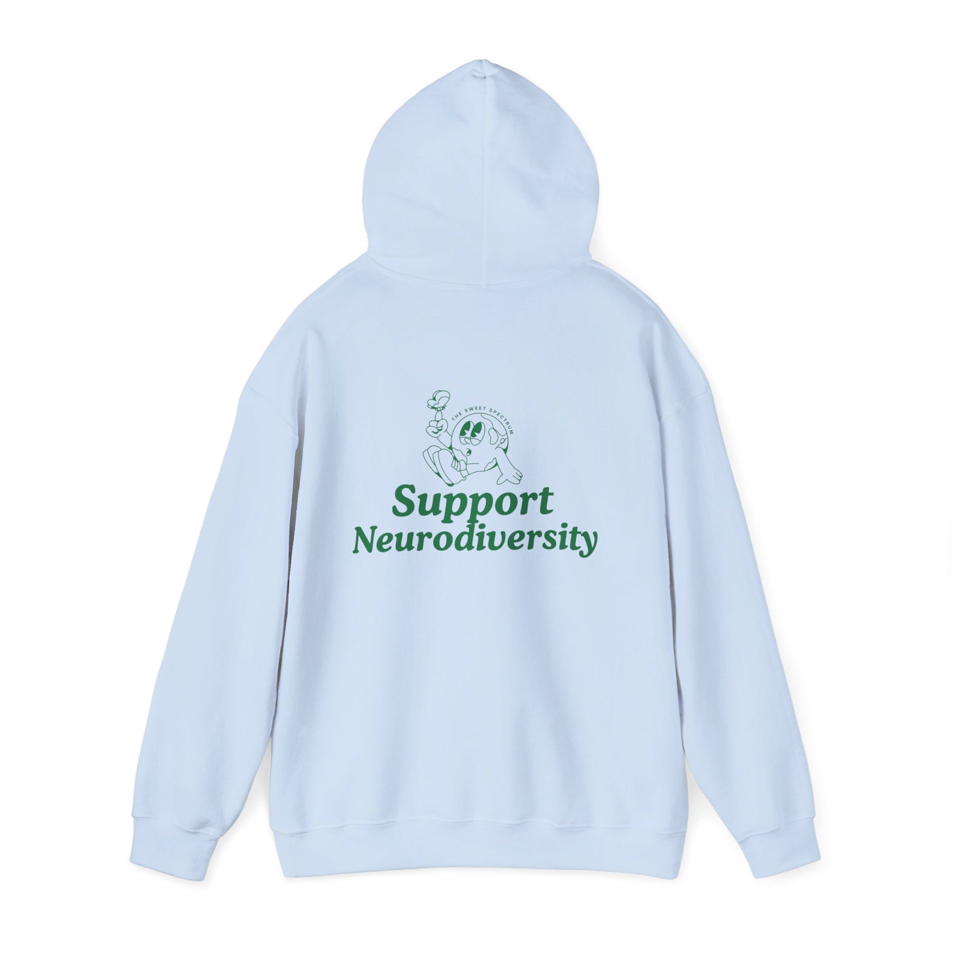 This cozy hoodie speaks softly but confidently: a warm, mid-weight layer that carries a calm green message — “Support Neurodiversity” — across the chest and back. The smooth cotton-poly blend feels soft against the skin and holds printed and embroidered details cleanly. Wear it on slow mornings, community meetups, or while volunteering — it’s a gentle statement piece that starts conversations without shouting. The roomy kangaroo pocket and double-lined hood make it comforting on cool evenings; the tear-away label and classic fit keep it easy and wearable for long days. For someone who cares about inclusion and thoughtful design, this hoodie blends comfort with quiet advocacy.